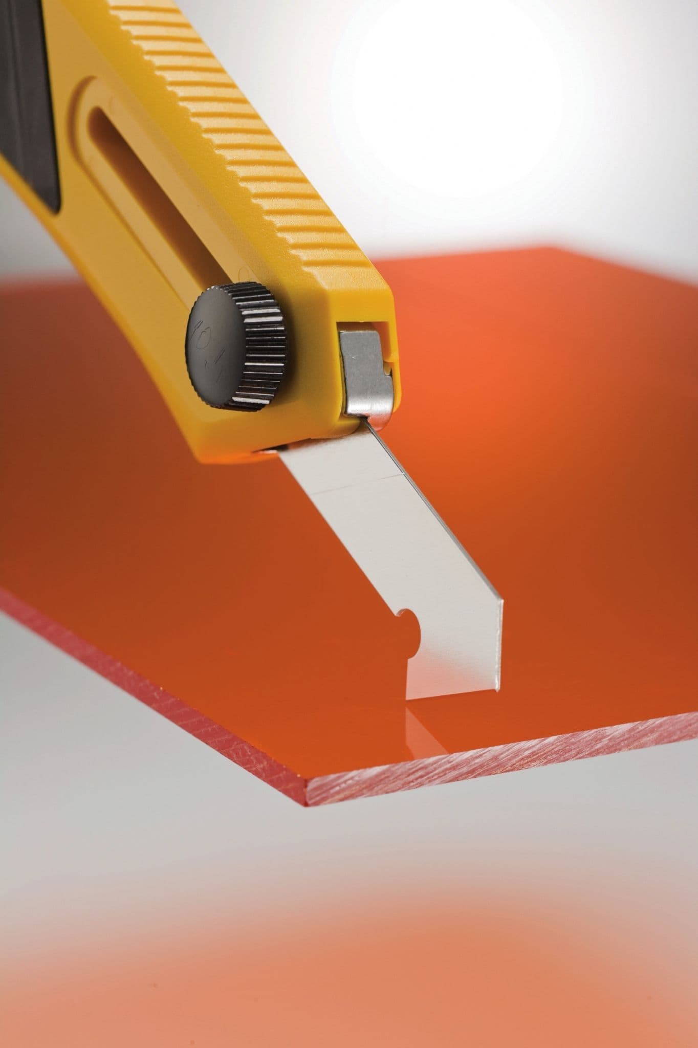 Heavy-duty Olfa plastic/laminate cutter designed as a scoring tool for sheet plastics and laminates, allowing for the precise breaking of plastics.