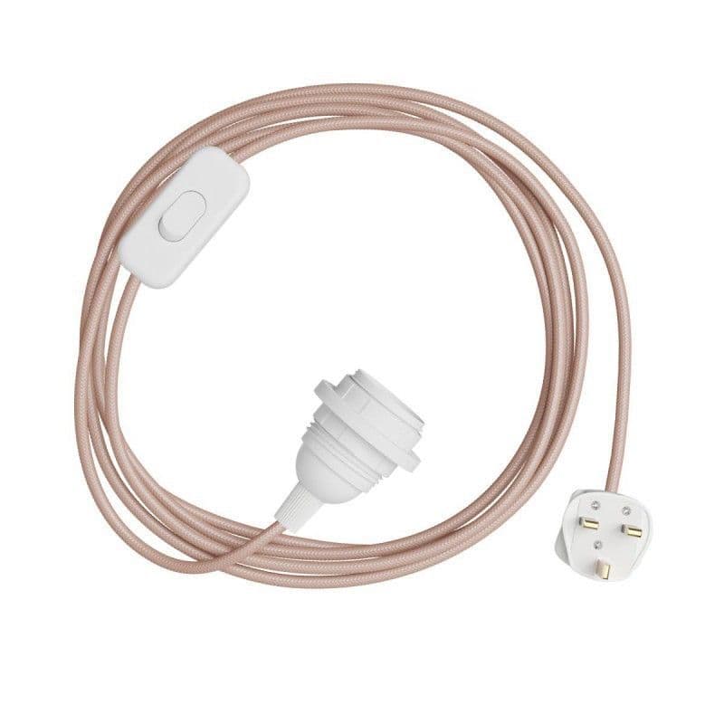 Pink Rayon Textile Cable Assembly with Lamp Holder, Plug & Switch