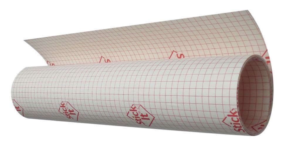 The material features a high-quality glassine release liner both sides, with a printed grid for accurate measuring, alignment, and cutting.