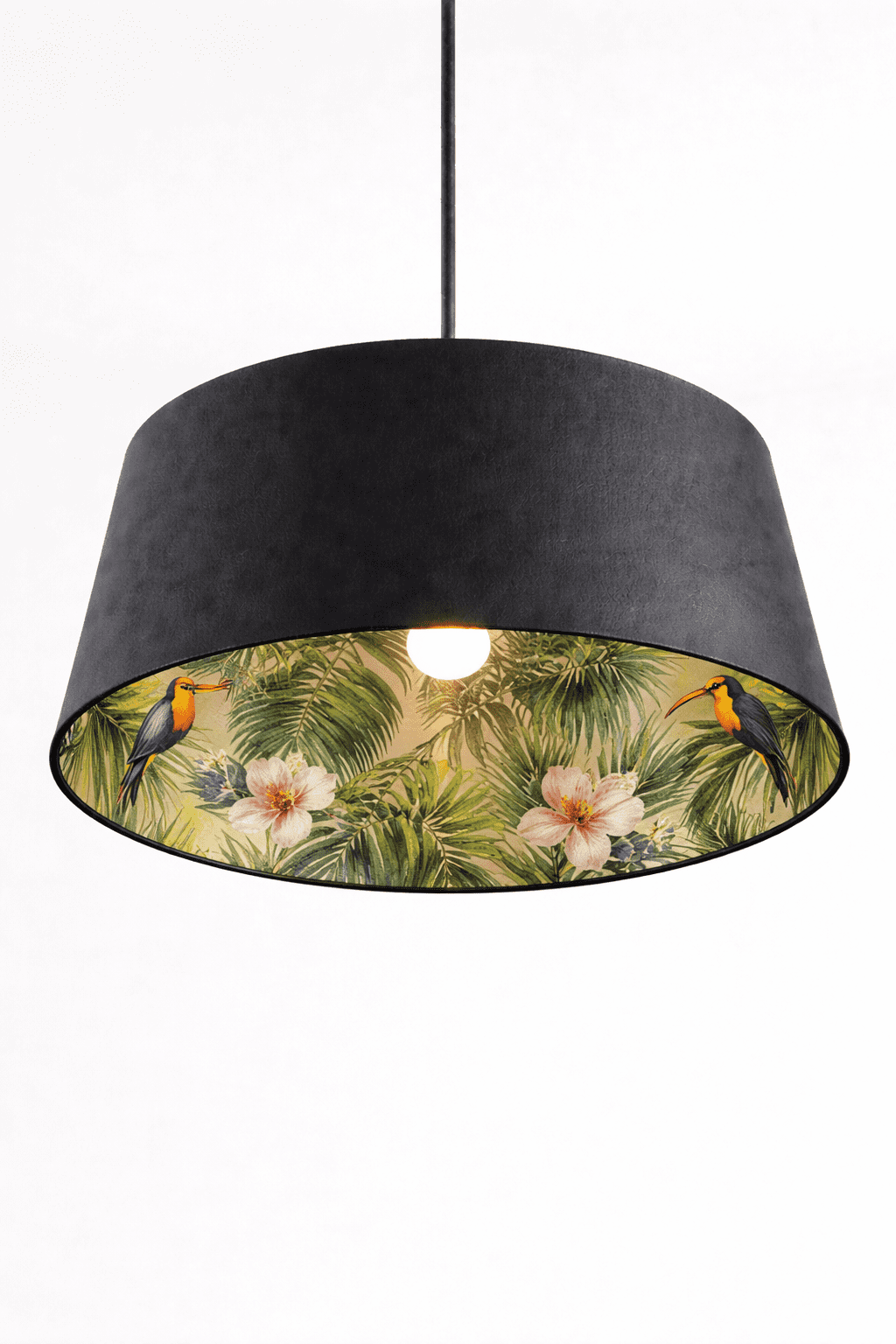 Lampshades featuring contrasting inner and outer fabrics add creativity, depth, and character to living rooms, bedrooms, and statement lighting pieces.